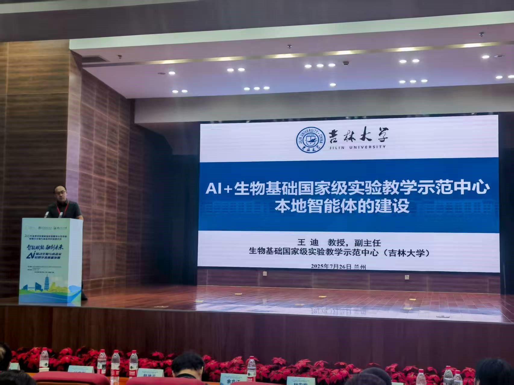 中心副主任王迪教授代表中心做了题为“AI+生物基础国家级实验教学示范中心(吉林大学)本地智能体的建设”的交流报告。报告中,王迪教授详细介绍了中心在AI+实验教学方面的总体规划和建设进展。随后从“AI+生物实验教学中心本地数智平台建设框架”出发,分享了中心在传统资源的数字化转型、新形态资源建设、知识图谱建设、数字助教建设与应用、AI智能体的建设与应用、生理实验AI评价系统的功能与应用、实验报告AI辅助评价系统的应用等方面的改革成果。报告获得了与会专家的一致好评,会后与参会代表就AI辅助实验教学的创新路径进行了广泛交流。